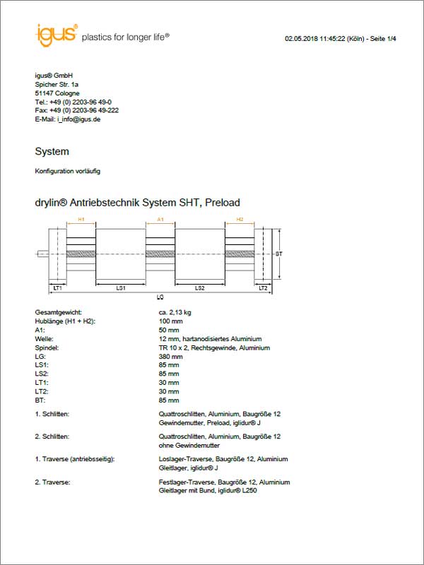 drylin® SHT Antriebstechnik Konfigurator